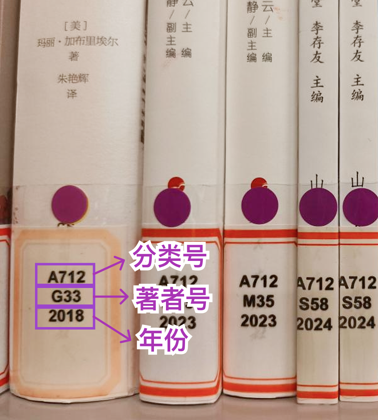 著者号(卡特号):卡特号代表了作者的姓氏,通常由一个或多个字母 + 数字组成,这样可以基本保证同一作者所著图书可以排放在一起。